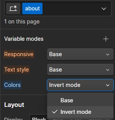 3. Następnie do sekcji about dodaj Variable modes / Color i ustaw Invert Mode.