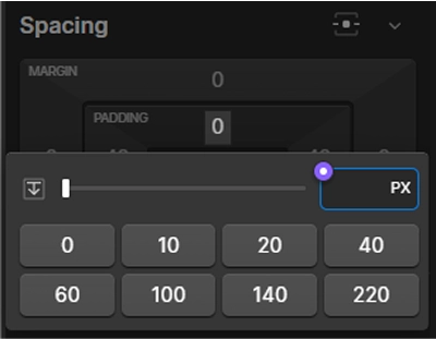 Sposób ustawienia: zaznacz klasę pierwszego elementu (first-child) np. header_content i dodaj zmienną w spacing > padding-top i padding-bottom, klikając fioletowe kółko. Otworzy się panel z dostępnymi zmiennymi, wybierz padding-section.